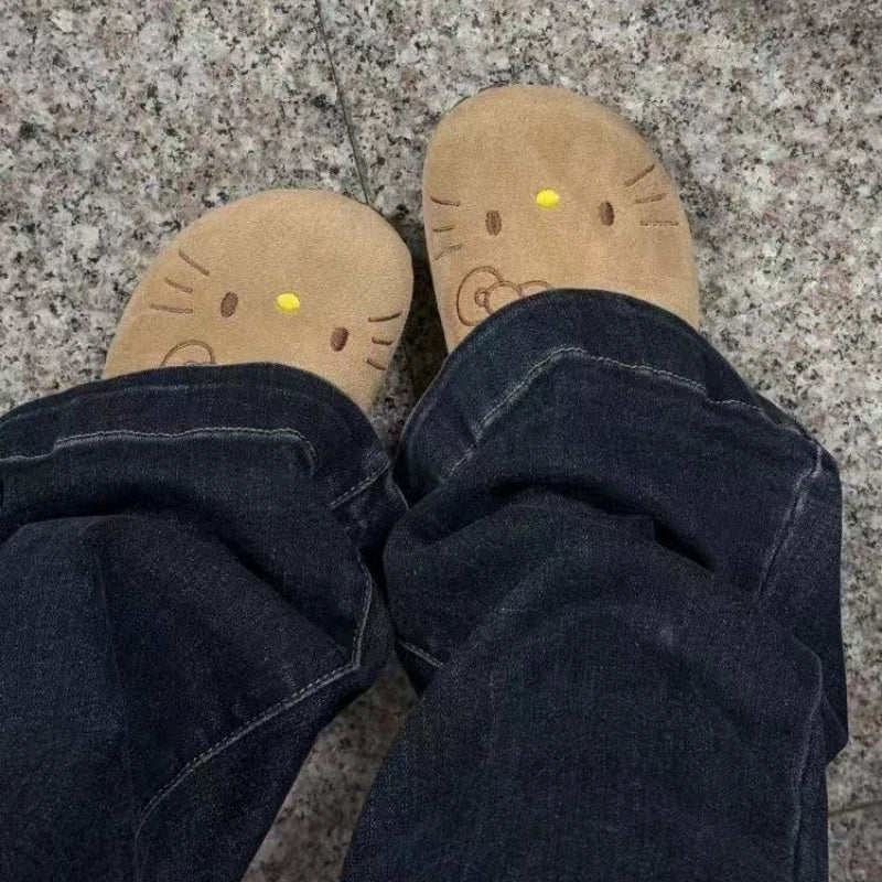 Sanrio Hello Kitty Cute Anime Summer Slippers – Sweet Cartoon Flat Shoes with Thick Sole for Girls
